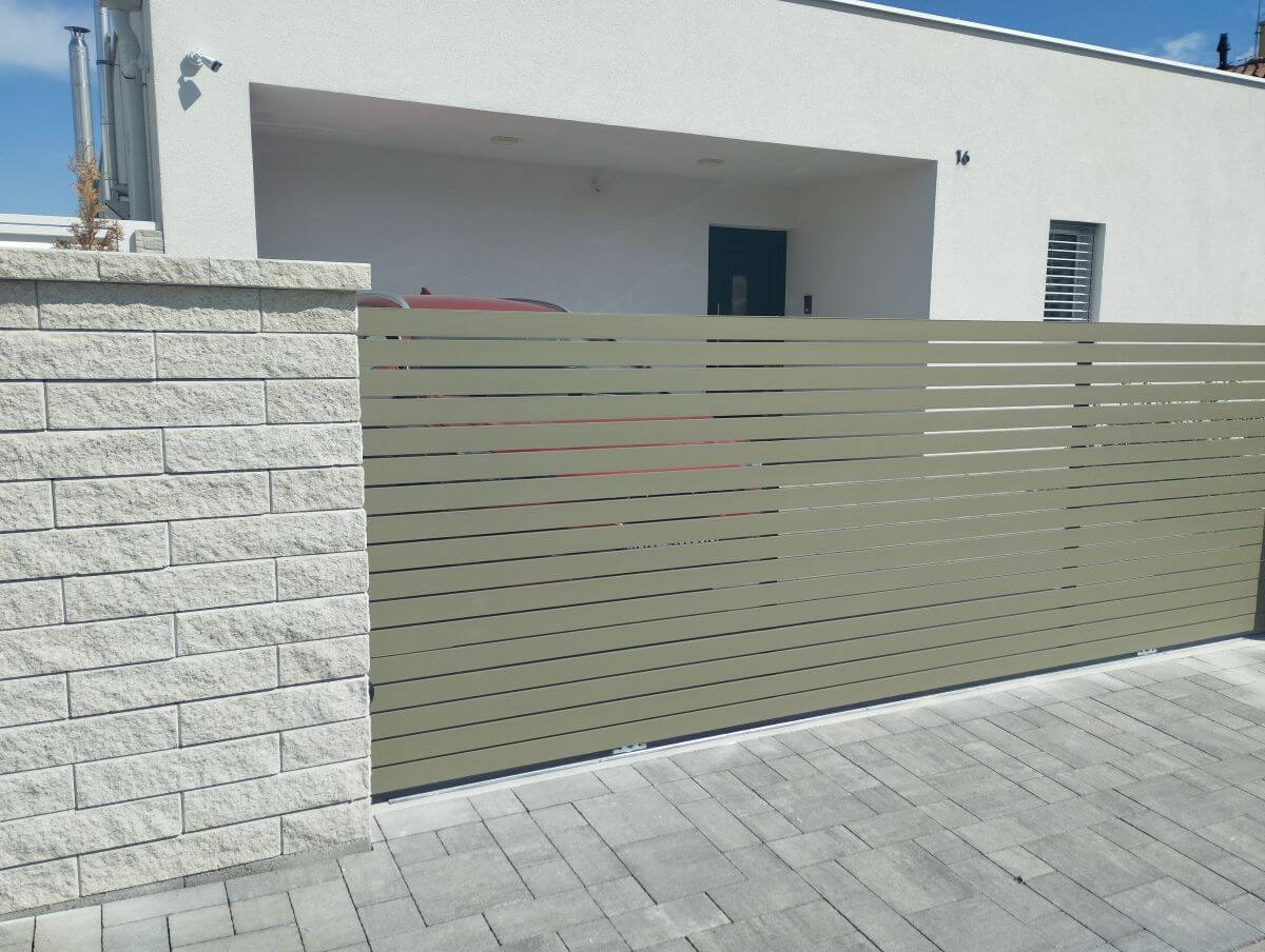 - Tento typ plotu a brány je obľube pre svoju estetickú príťažlivosť, pretože ponúka čistú horizontálnu líniu, čím dodáva moderný vzhľad
